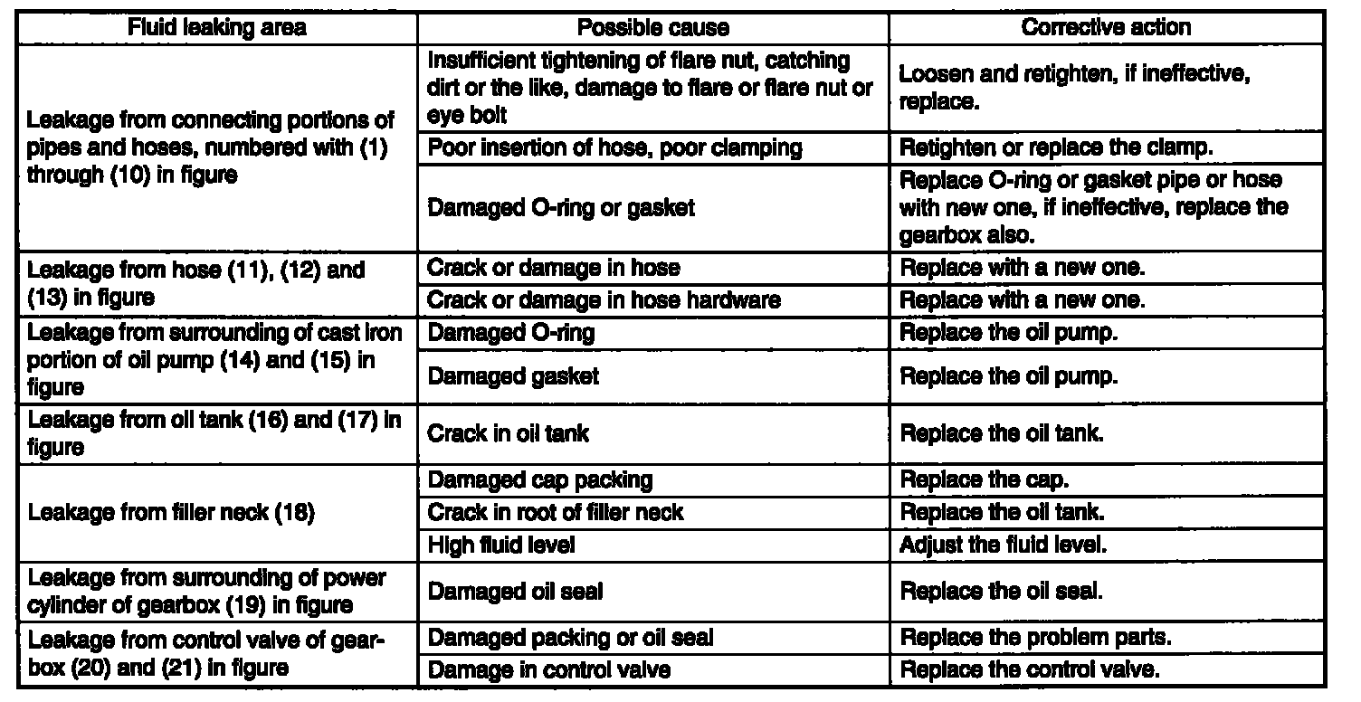 CAUTION: It is likely that although one judges fluid leakage, there is actually no leakage. This is because the fluid spilt during the last maintenance was not completely wiped off. Be sure to wipe off spilt fluid thoroughly after maintenance.