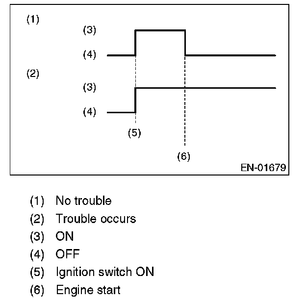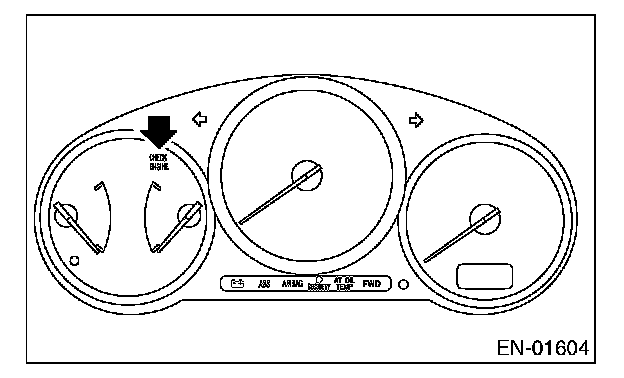 ACTIVATION OF MALFUNCTION INDICATOR LIGHT1. When the ignition switch is turned to ON (engine off), the malfunction indicator light in the combination meter illuminates.