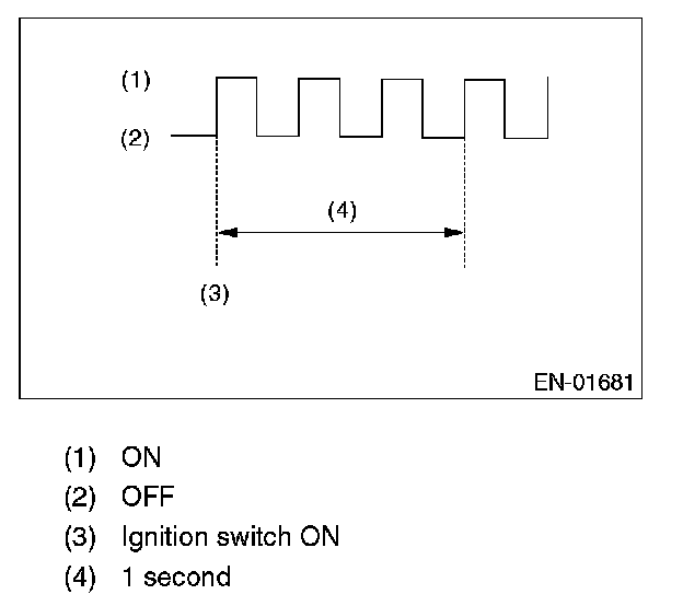 4. When the ignition switch is turned to ON (engine off) or to START with the test mode connector connected, the malfunction indicator light blinks at a cycle of 3 Hz.
