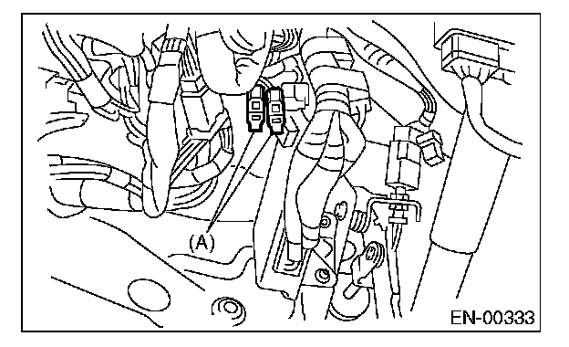 5. Connect the test mode connector (A) at the lower portion of instrument panel (on the driver's side).