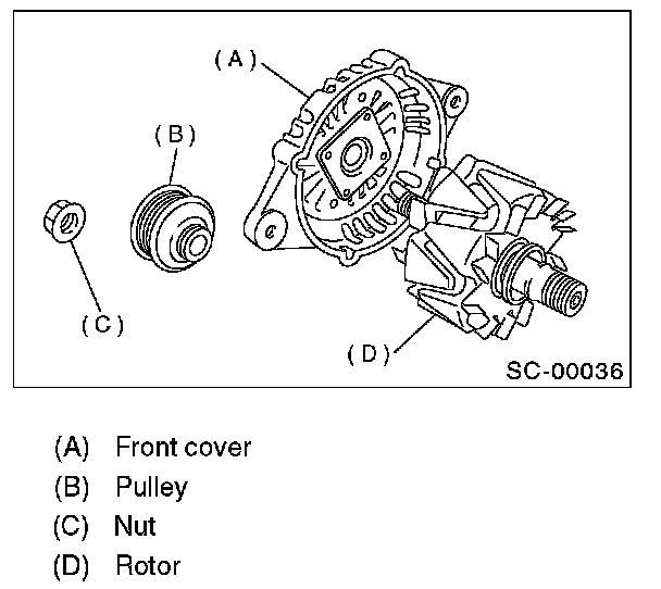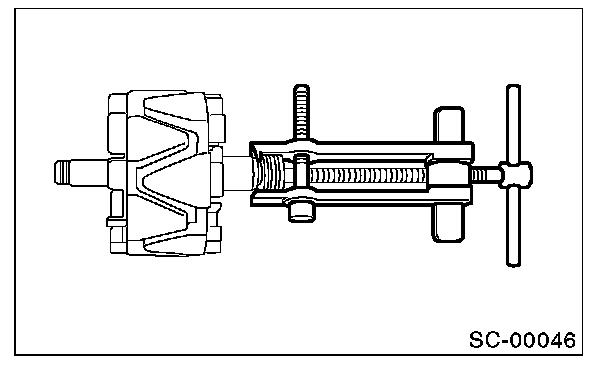 5. After reassembly, turn the pulley by hand to check that rotor turns smoothly.
