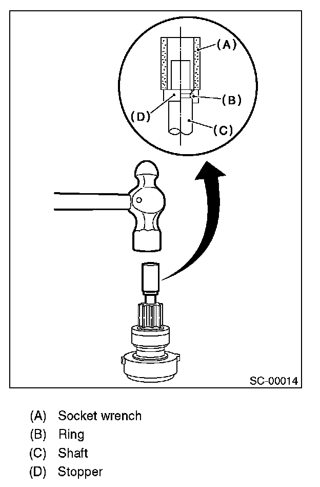 1. Remove the stopper from ring by lightly tapping the stopper with an appropriate tool (such as a fit socket wrench).