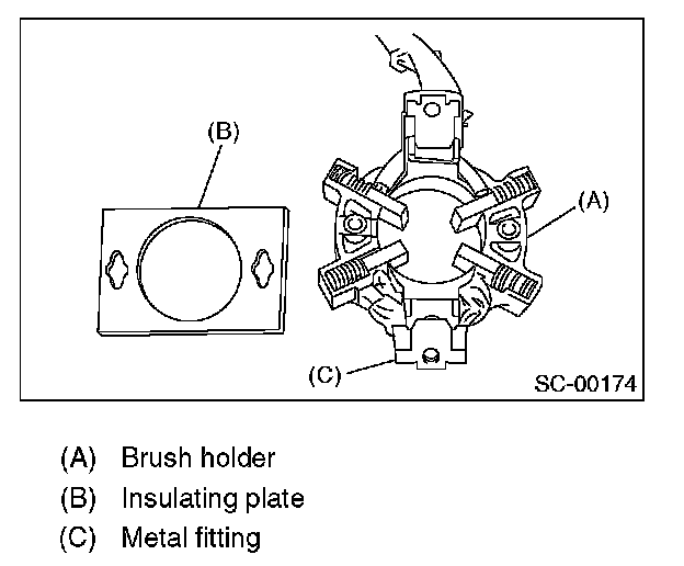 Slightly open the metal fitting while holding the insulating plate against the brush holder. Remove the insulating plate.