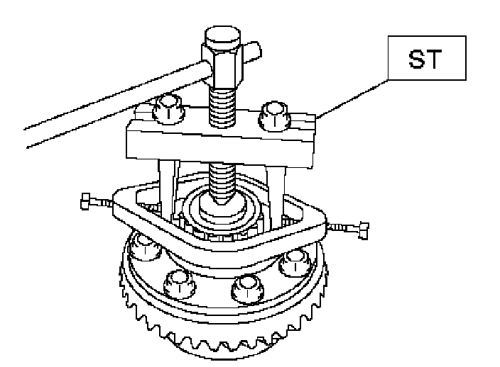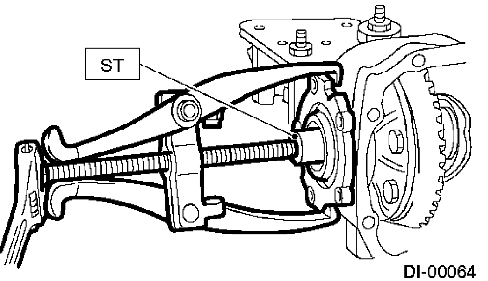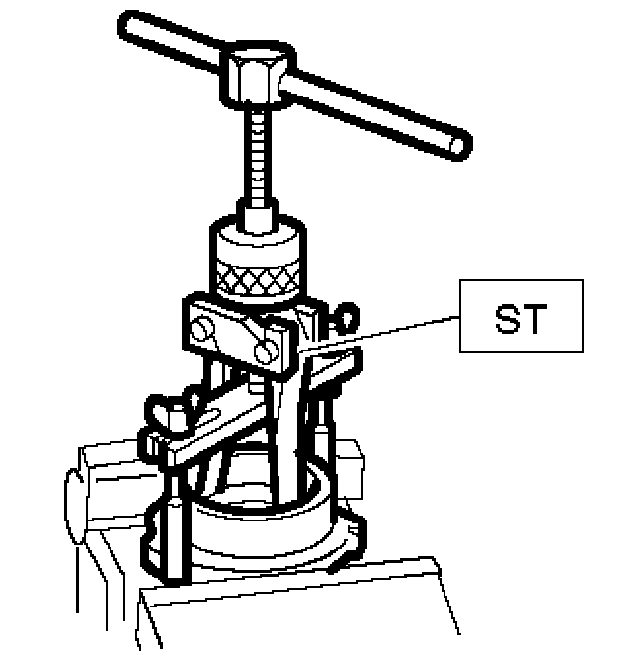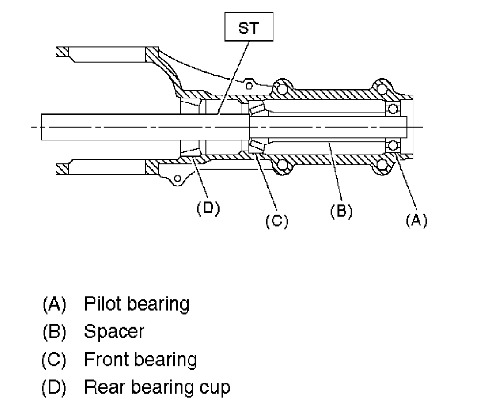 15. Remove the pilot bearing together with front bearing cone and spacer using ST.