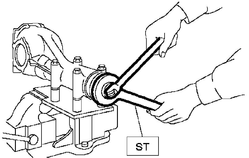 10. Hold the companion flange with ST and remove the drive pinion nut.