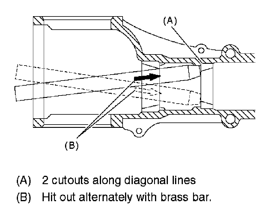 16. When replacing the bearings, tap the front bearing cup and rear bearing cup in this order out of case by using a brass bar.