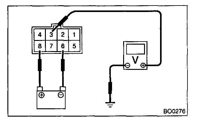 2. Connect the positive (+) lead from the battery to terminal 8 and the negative (-) lead to terminal 6. Connect the positive (+) lead from the voltmeter to terminal 3 and negative lead to ground.