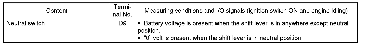 Electrical Specification - SOHC Model: