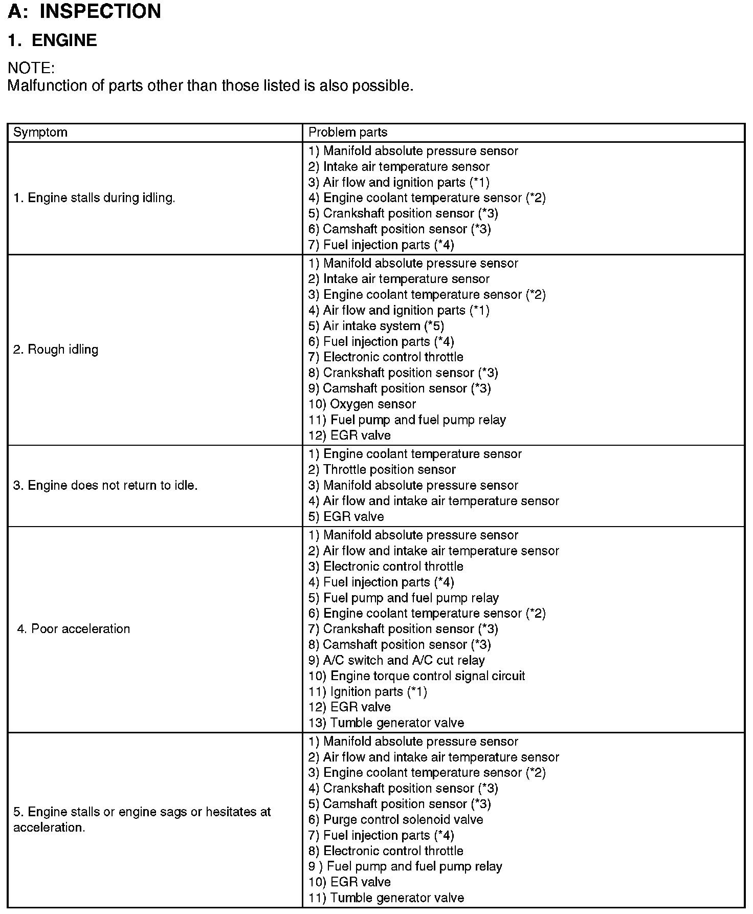 General Diagnostic Table - Engine Part 1: