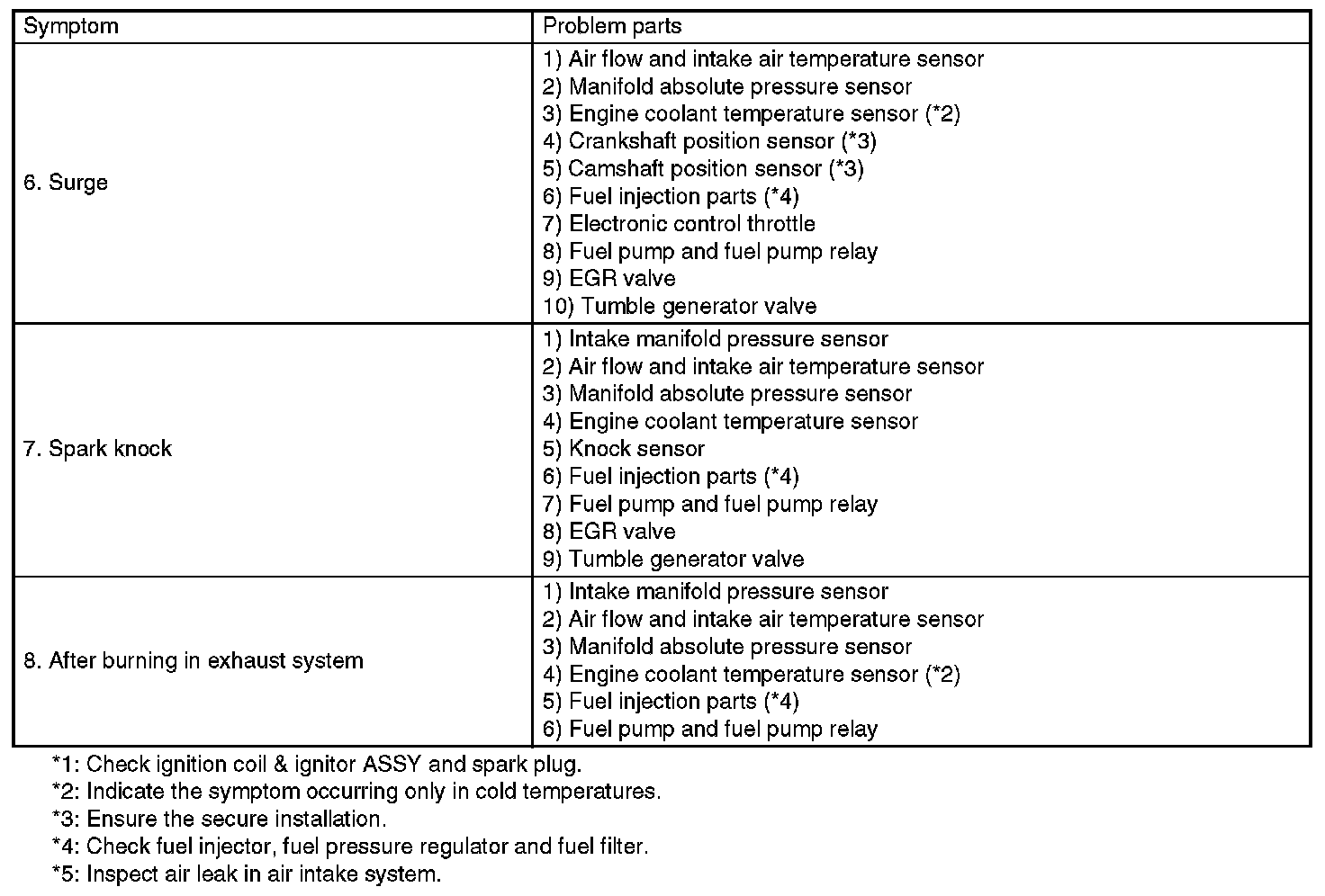 General Diagnostic Table - Engine Part 2: