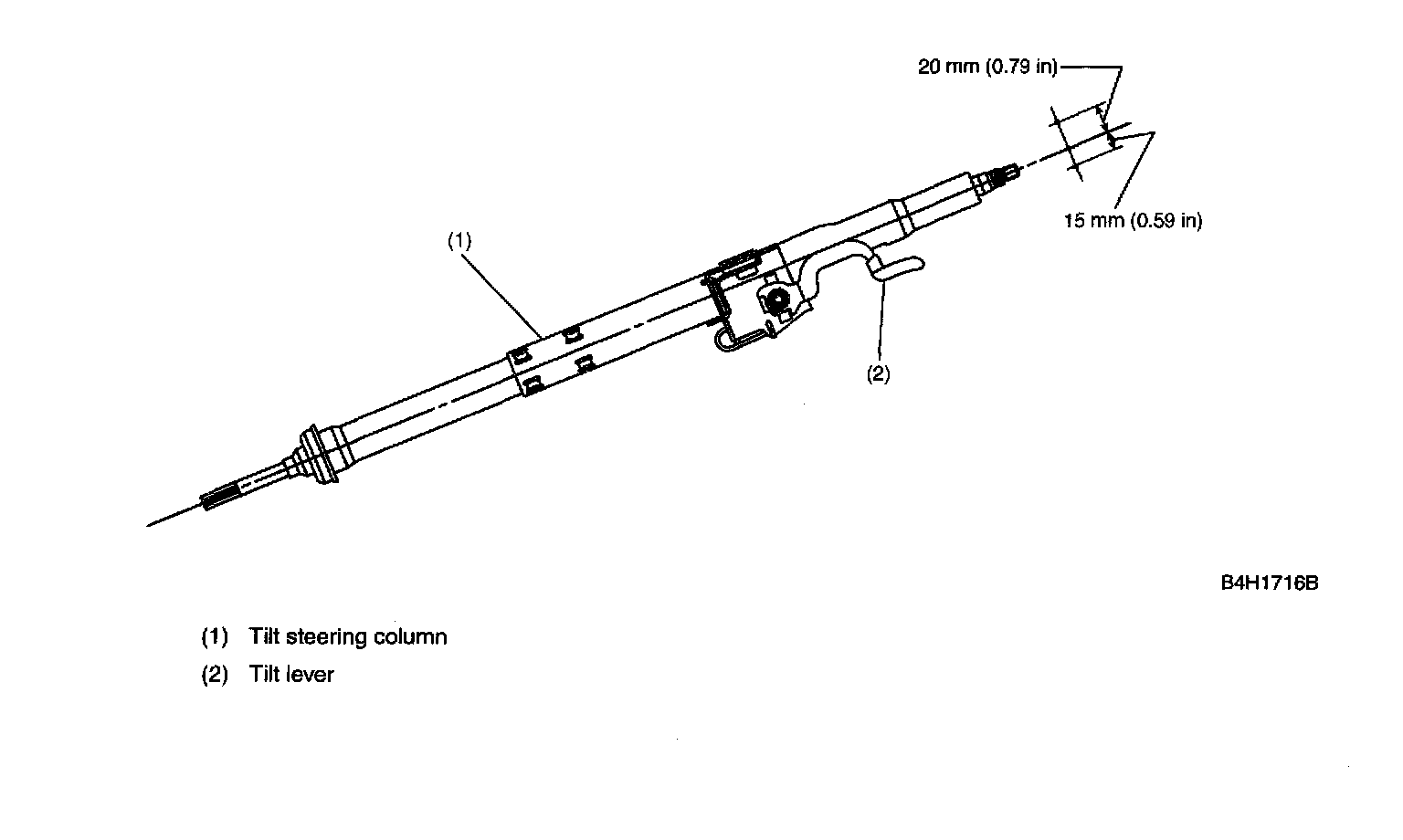 The steering wheel vertical position can be adjusted within a 35 mm (1.38 inch) range by using the tilt lever to unlock the steering column and lock it again at the desired position.
