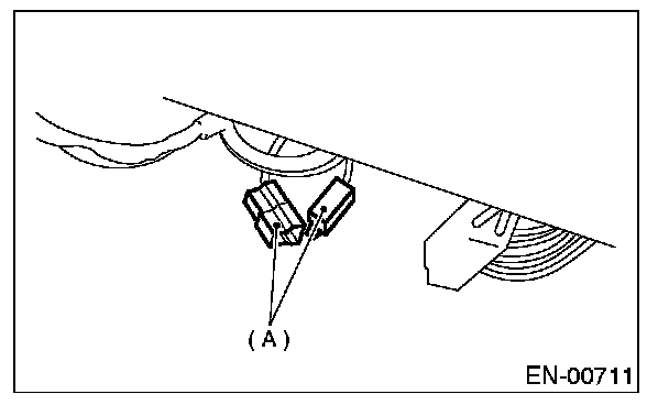 4. Connect test mode connector (A) at the lower portion of instrument panel (on the driver's side), to the side of the center console box.