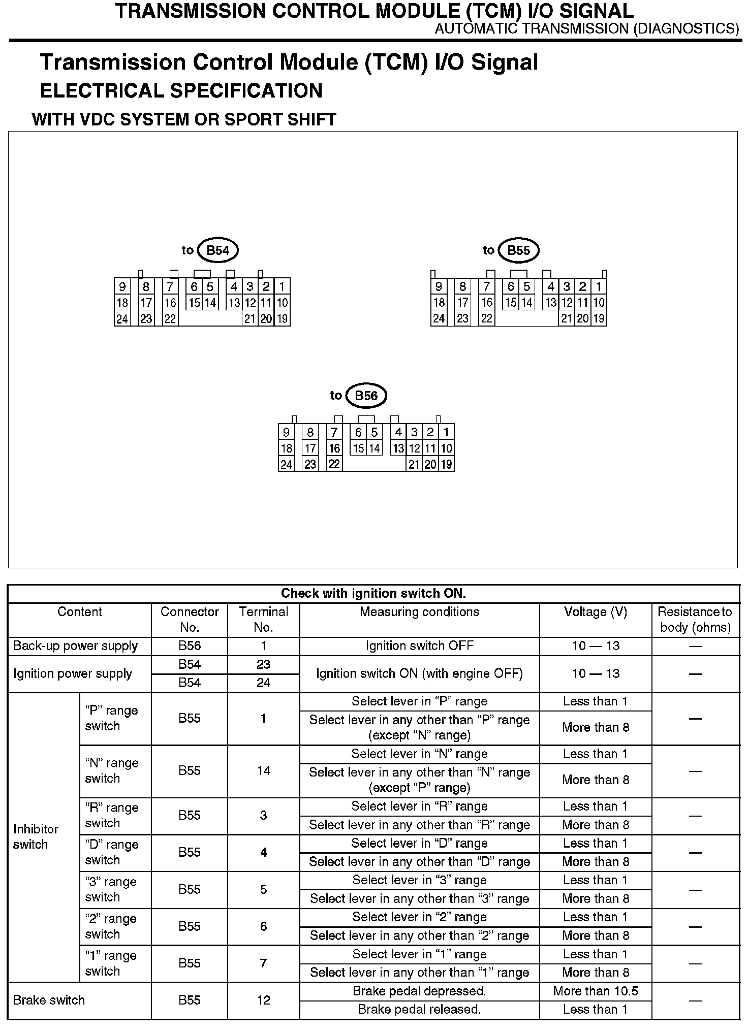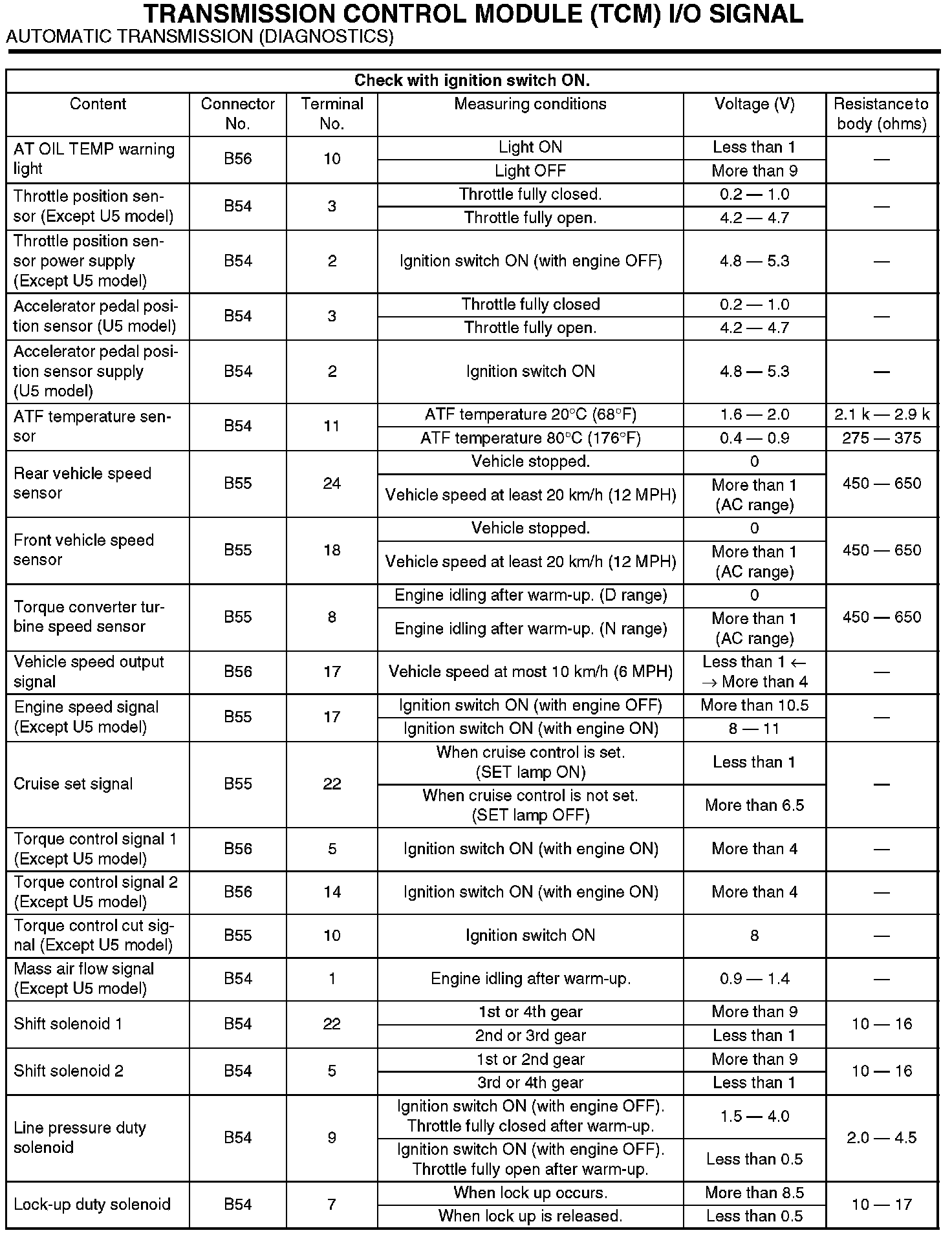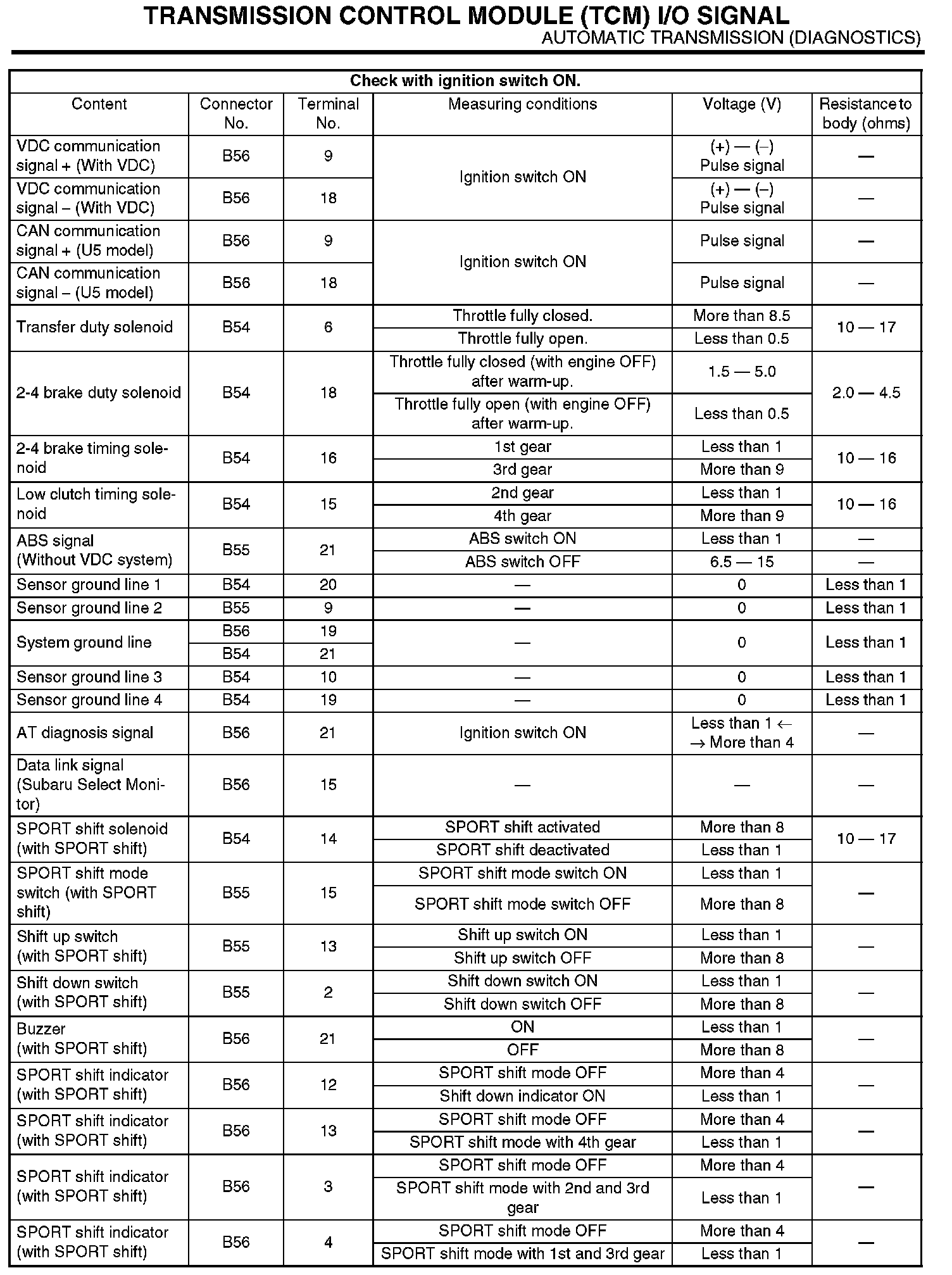 The content of this article/image reflects the changes identified in tsb 18_99_06 Dated 01/19/06 and applies to Legacy, Forester, Impreza and Baja models.Transmission Control Module (TCM) I/O Signal