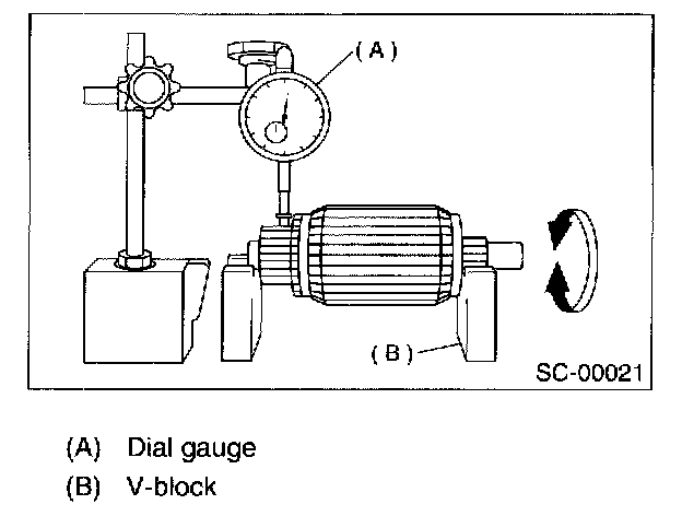 Check the commutator run-out and replace if it exceeds the limit.
