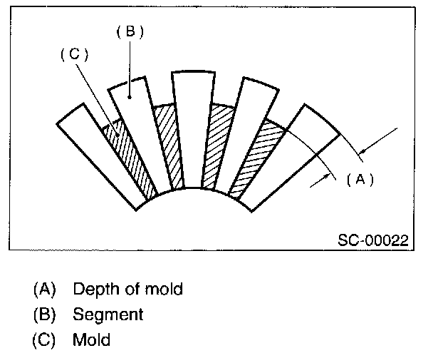 Depth of segment mold: 0.6 mm (0.024 in)