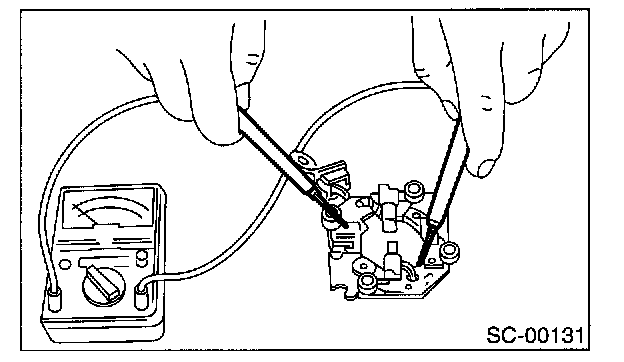Be sure there is no continuity between brush holder and its plate.