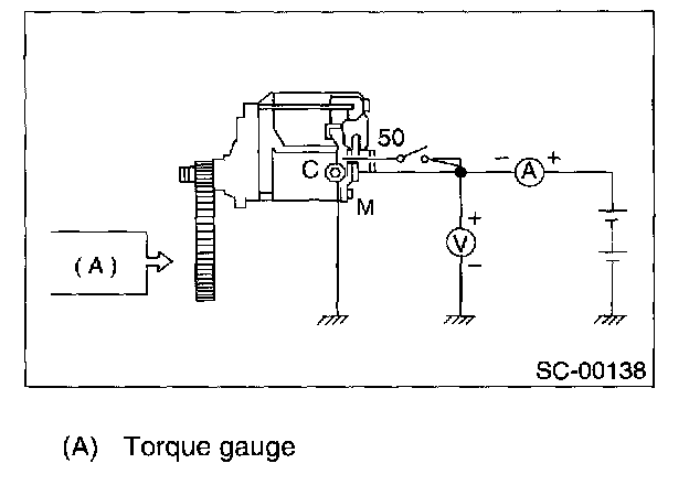 The starter is required to produce a large torque and high rotating speed, but these starter characteristics vary with the capacity of the battery. It is therefore important to use a battery with the specified capacity whenever testing the starter. The starter should be checked for the following three items: