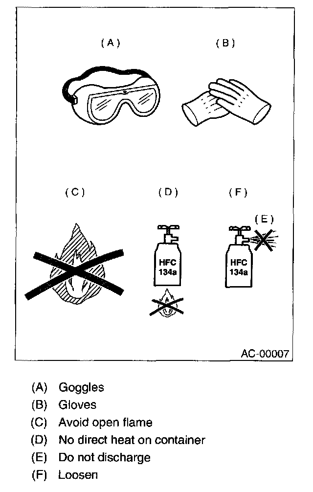 - Do not drop or impact a service can. (Observe the precautions and operation procedure described on the refrigerant can.)