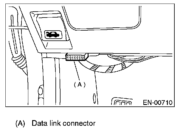 2. Open the cover and connect the OBD-II general scan tool to the data link connector (A) located in the lower portion of the instrument panel (on the driver's side).
