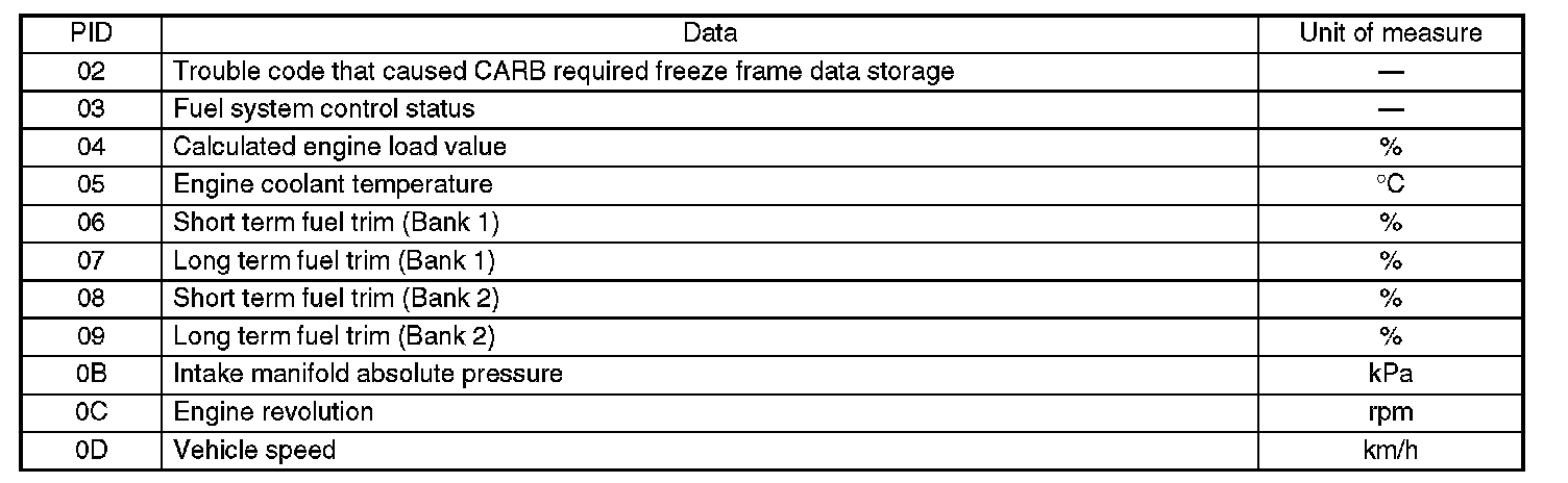 NOTE: Refer to OBD-II general scan tool manufacturer's instruction manual to access generic OBD-II PIDs (MODE $01).