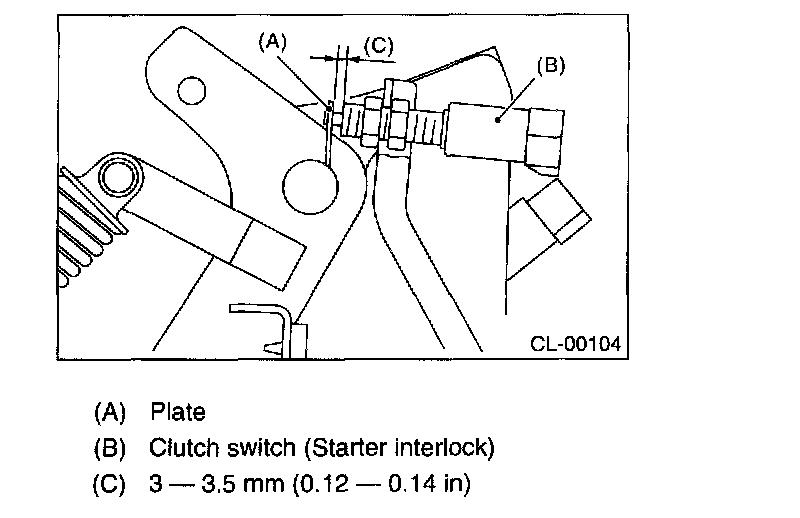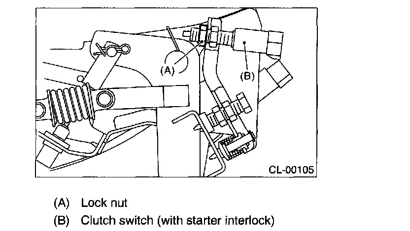 1. Loosen the clutch switch mounting lock nut (Starter interlock).