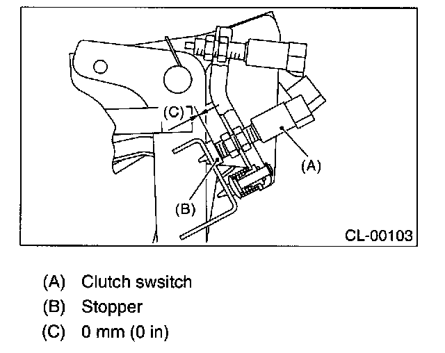 1. Install the clutch switch and clutch pedal stopper so that the gap between them is O mm (O inch).