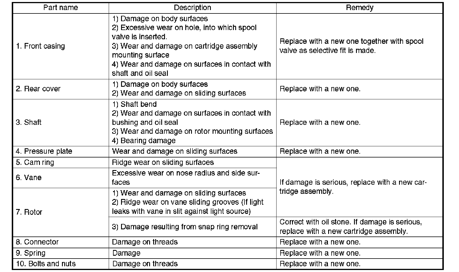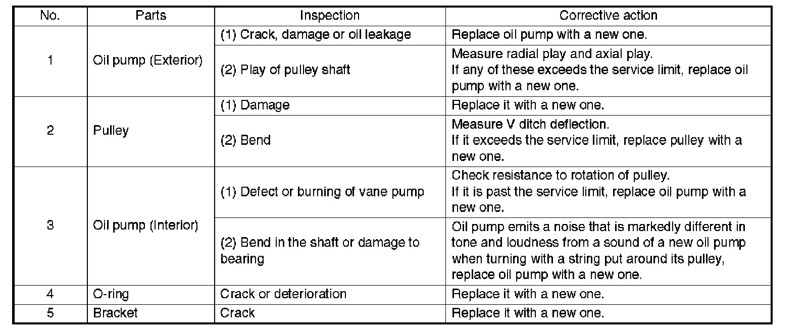 ^ In accordance with the table, check all removed parts for wear and damage, and make repair or replacement if necessary.