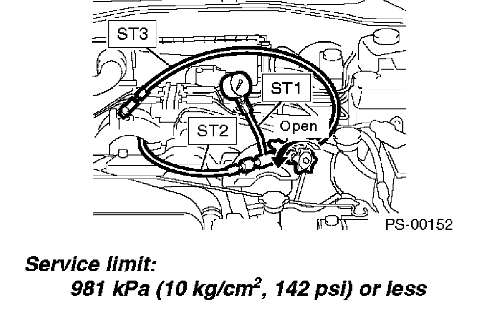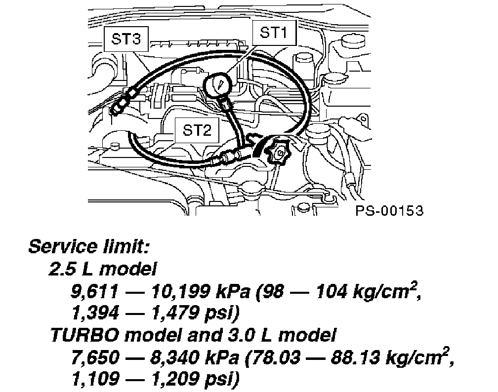 Service limit. 2.5L model 9,611 - 10,199 kPa (98 - 104 kgf/cm2, 1,394 - 1,479 psi)