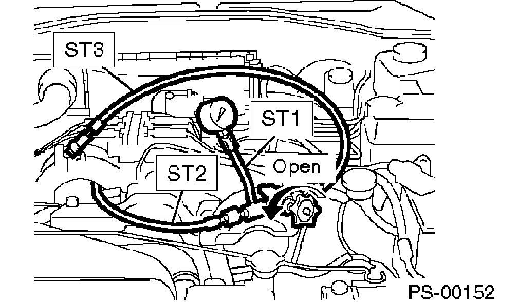 3. Using gasket (Part No. 34621AC021) and bolt (Part No. 34620AC010), install ST2 to the pump instead of pressure hose.