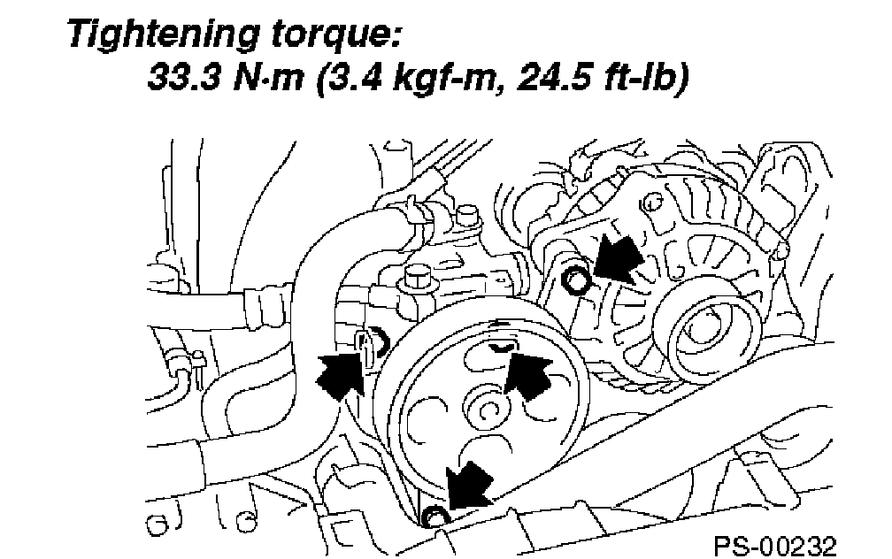 2. Tighten bolts which install power steering pump bracket.