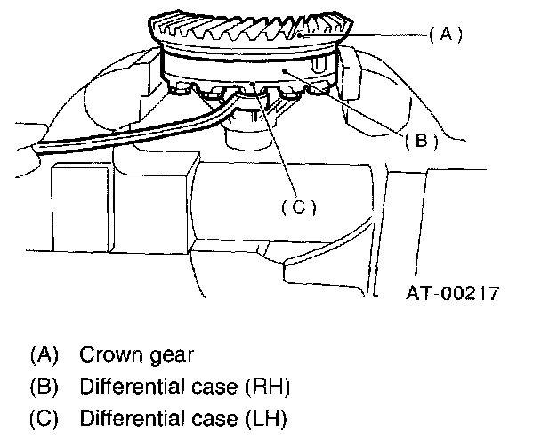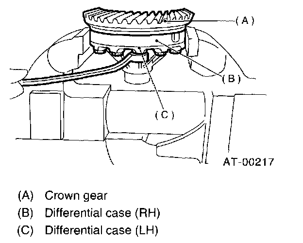 1. Install the differential assembly to the case, paying special attention not to damage the inside of the case (particularly, the differential side retainer contact surface).