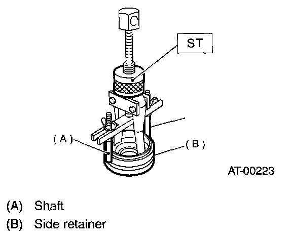 6. Hold the shaft of ST to avoid removing from side retainer, and then remove the bearing outer race.