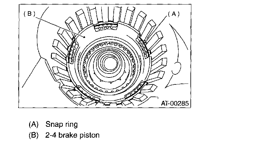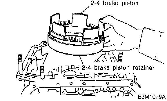 21. Remove the 2-4 brake piston and piston retainer without damaging.