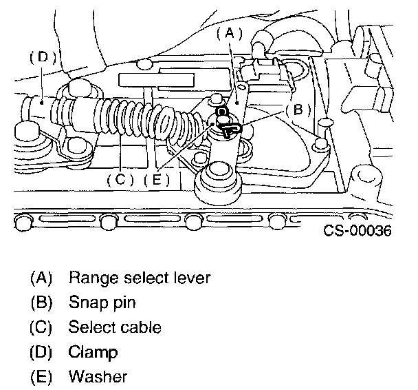 7. Remove the snap pin from range select lever.