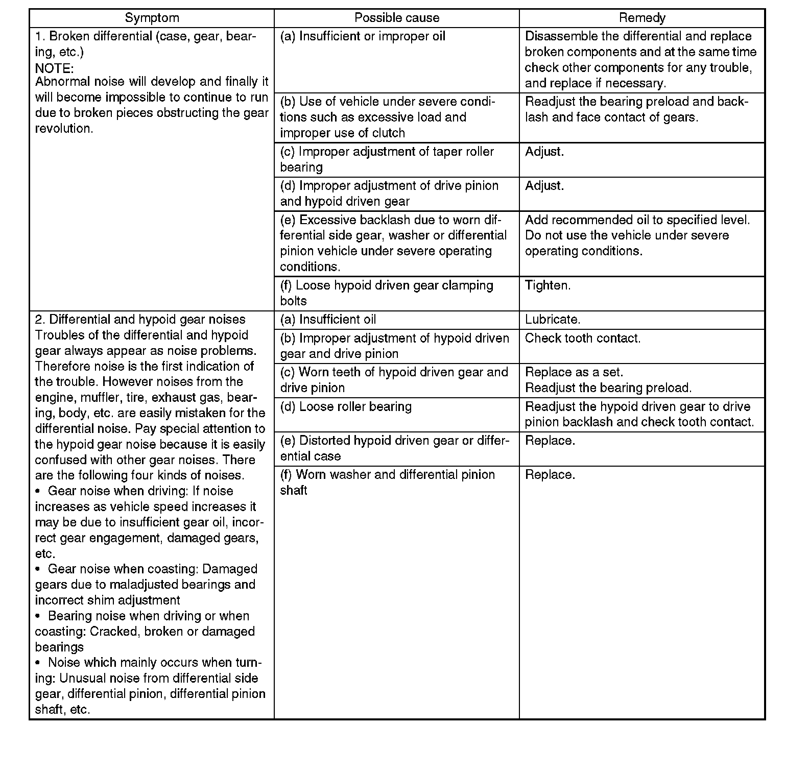 General Diagnostic Table - Differential