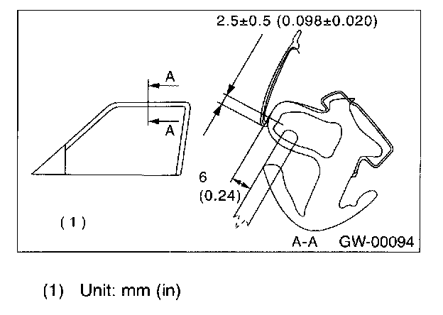 12. After adjustment of glass, if there is a gap between outer lip of gusset and glass surface, adjust the gap with adjusting bolt (A) in lower fitting part of gusset to prevent generation of wind noise.