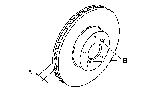 NOTE: If disc rotor seizes up within hub, drive disc rotor out by installing an 8-mm bolt in holes B on the rotor.