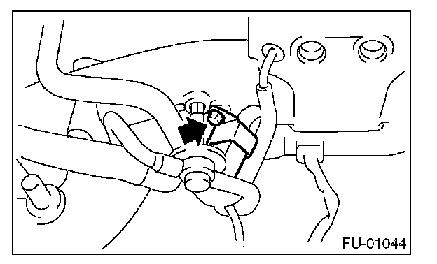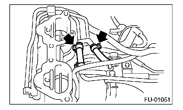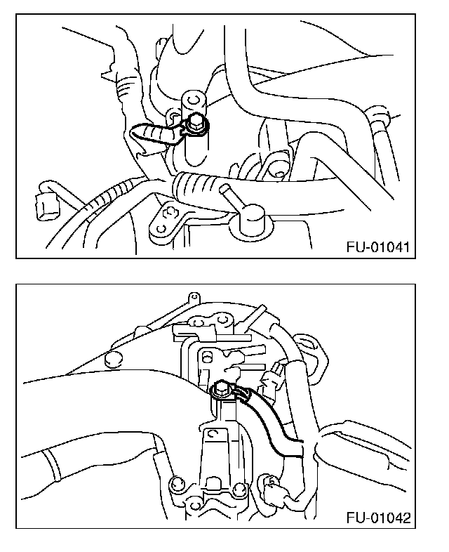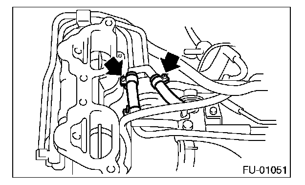 14. Loosen the clamp which holds the front left side fuel hose to injector pipe, and then remove the pipe from clamp.