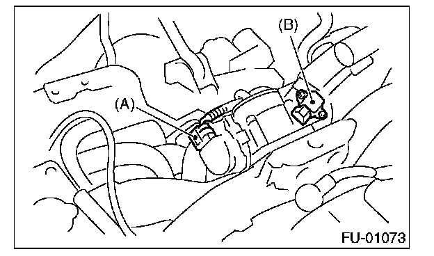 2. Disconnect the connector from the throttle position sensor (A) and manifold absolute pressure sensor (B).