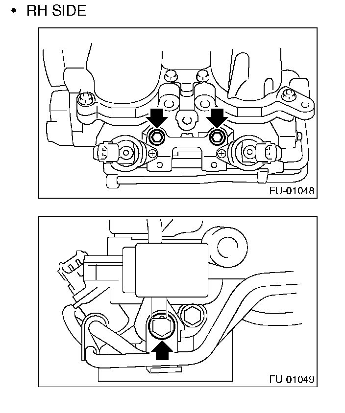 10. Remove the two bolts which hold the fuel pipes on the left side of intake manifold.