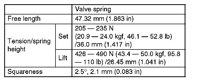 1. Check the valve springs for damage, free length, and tension. Replace the valve spring if it is not within specifications presented in the table.
