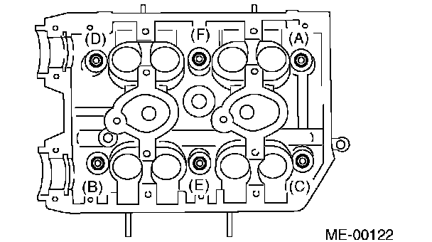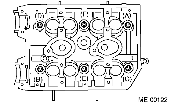 Leave bolts (A) and (D) engaged by three or four threads to prevent the cylinder head from falling.