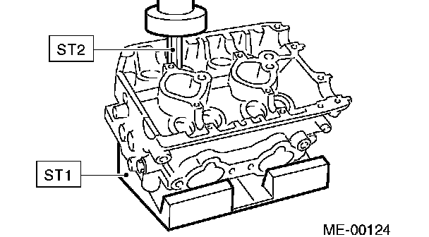 b Insert the ST2 into valve guide and press it down to remove the valve guide.
