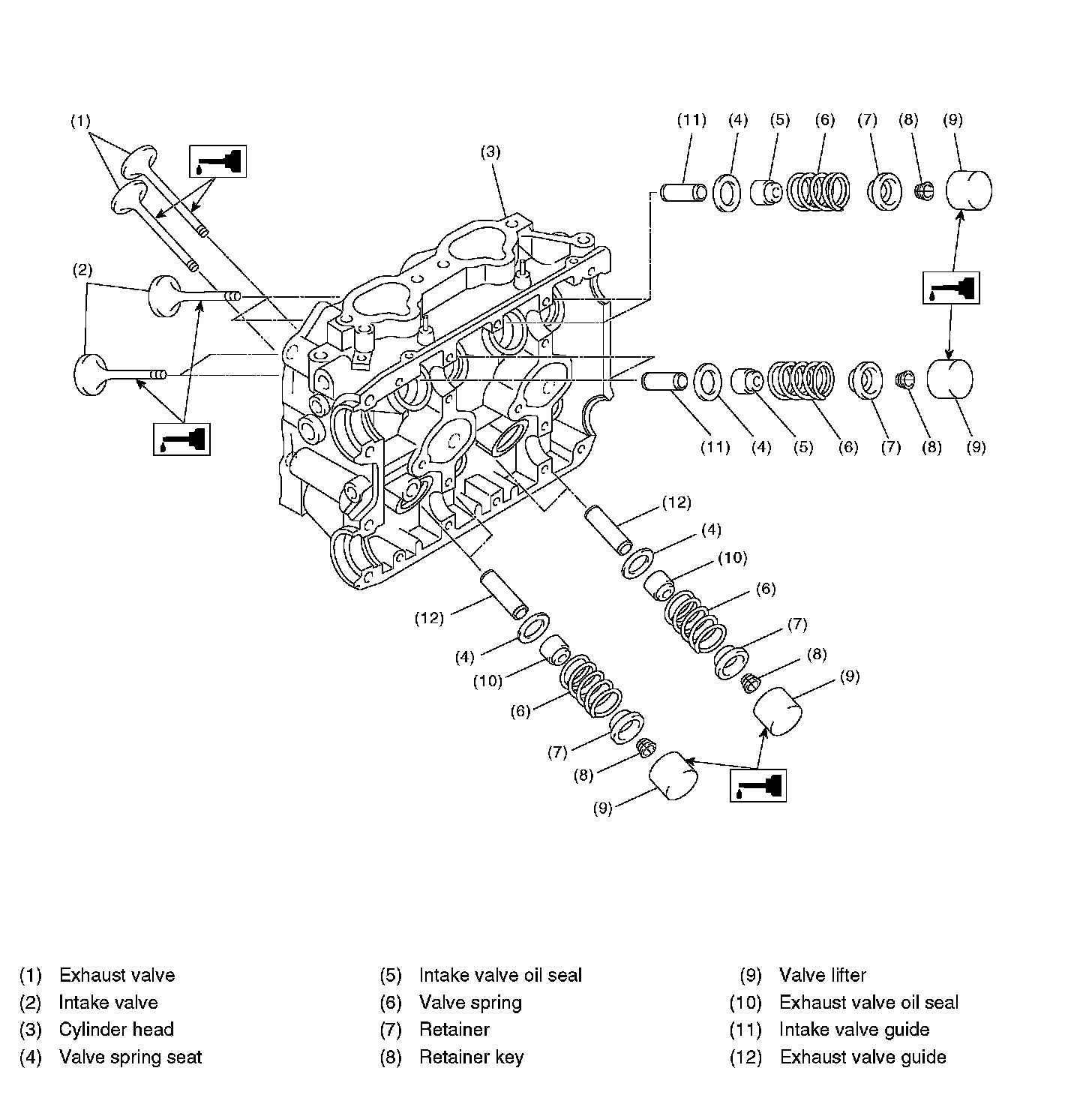 NOTE: When inserting the valve into valve guide, use special care not to damage the oil seal lip.