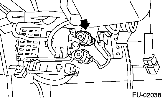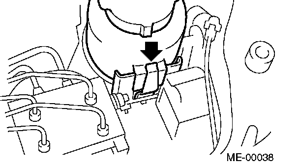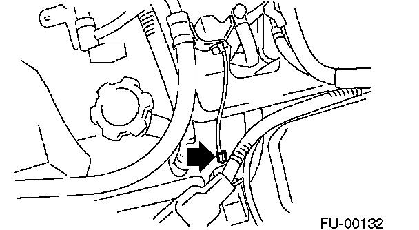^ Disconnect the hose with its end wrapped with cloth to prevent fuel from splashing.