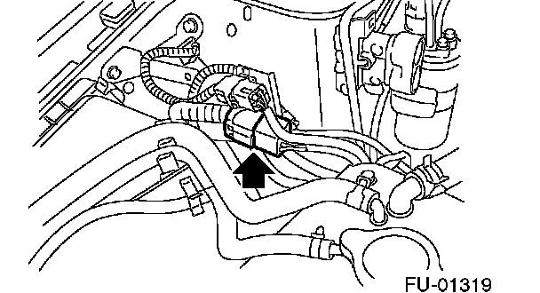 23. Disconnect the fuel delivery hose, return hose and evaporation hose.
