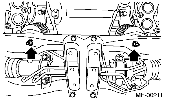 18. Remove the nuts which install the front cushion rubber onto front crossmember.