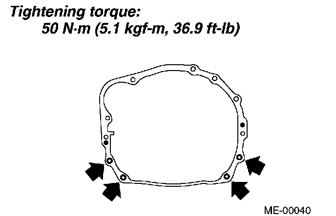 Tightening torque: 50 Nm (5.1 kgf-m, 36.9 ft. lbs.)