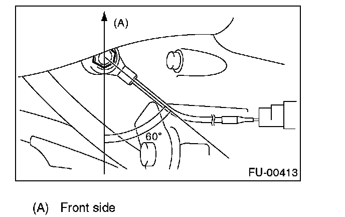 NOTE: Extraction area of the knock sensor cord must be positioned at a 60 degree angle relative to the engine rear.