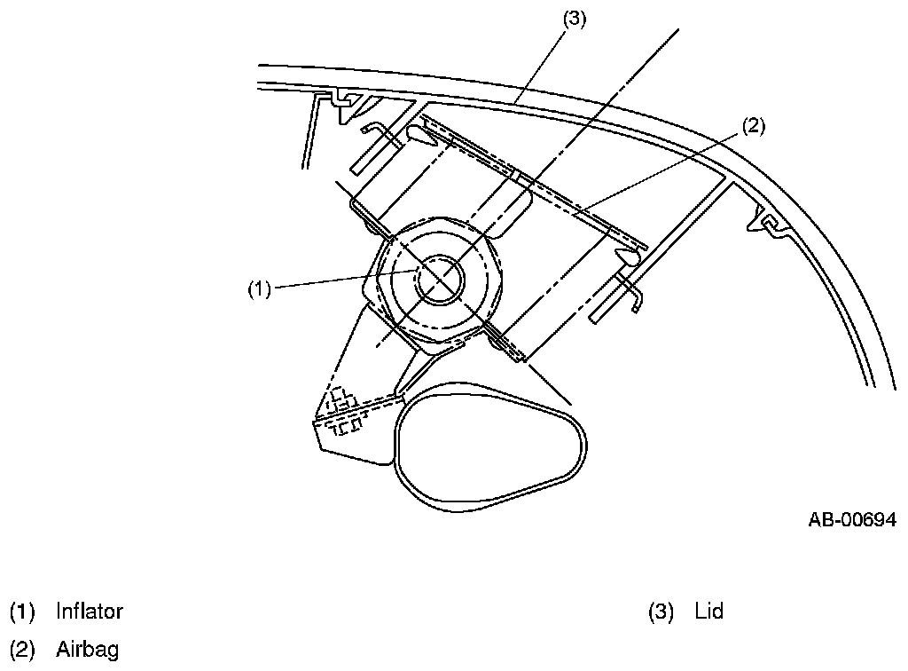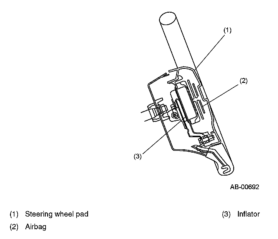 The driver's seat airbag module is built in the steering wheel pad.